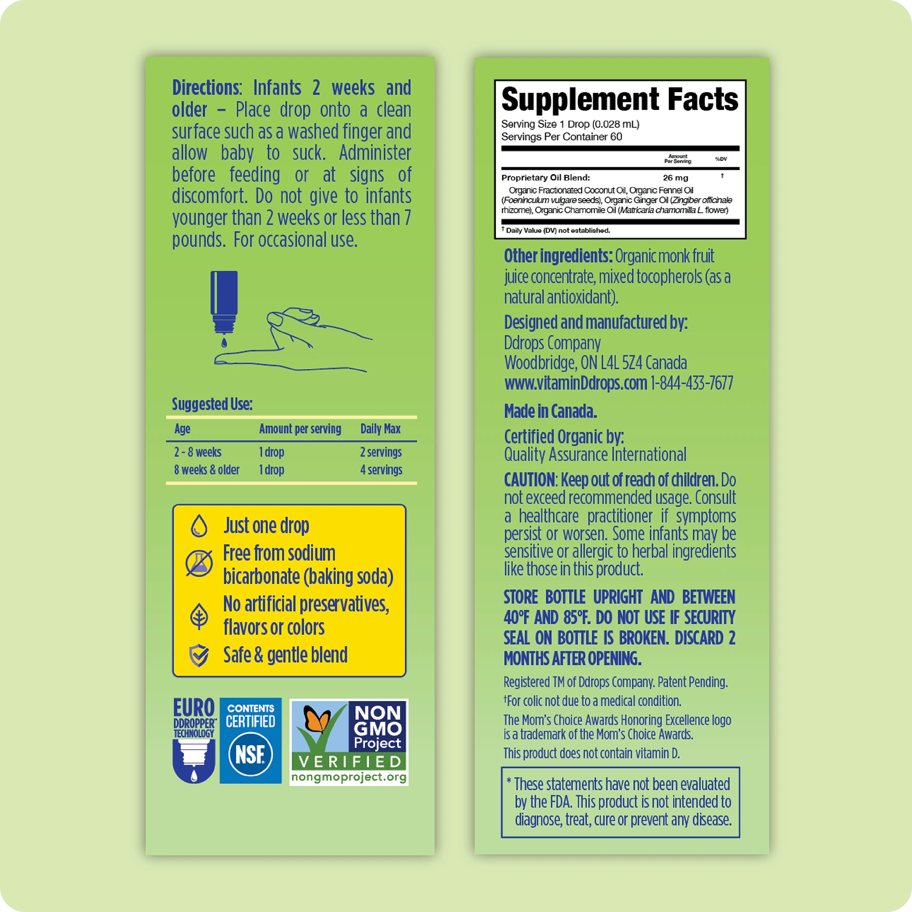 For infants 2 weeks+: Place drop onto a clean surface such as a washed finger and allow baby to suck. Administer before feeding or at signs of discomfort.