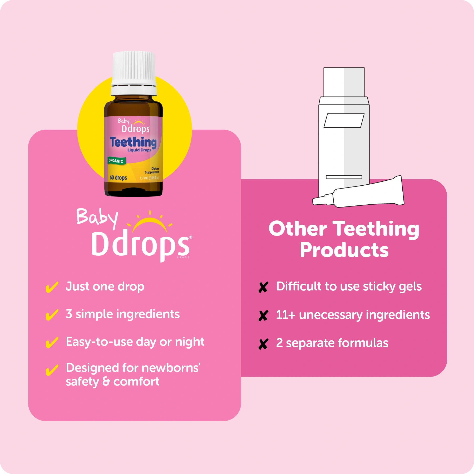 At Ddrops® we believe what we put in is just as important as what we leave out, which is why we keep everything baby needs and drop the unnecessary additives and common allergens.