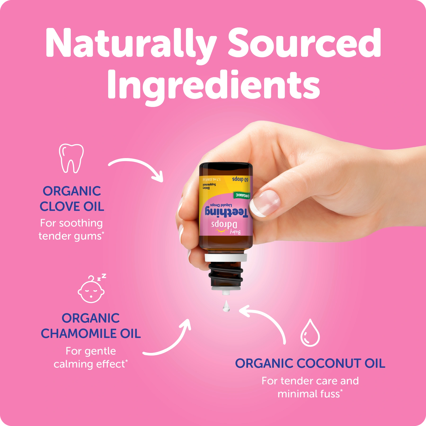 Made with a gentle blend of organic clove and chamomile oil.