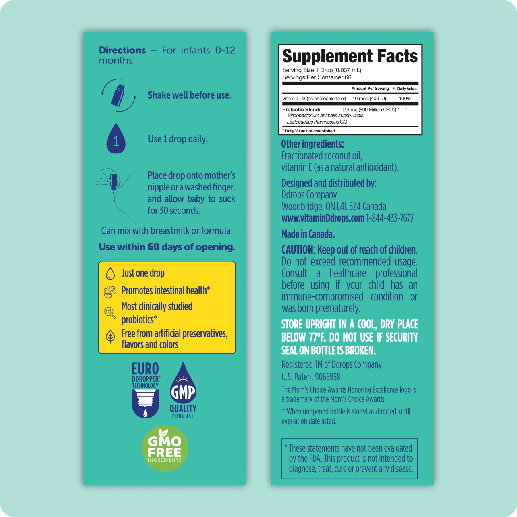 Clinically proven strains and daily recommended 400 IU in just one drop