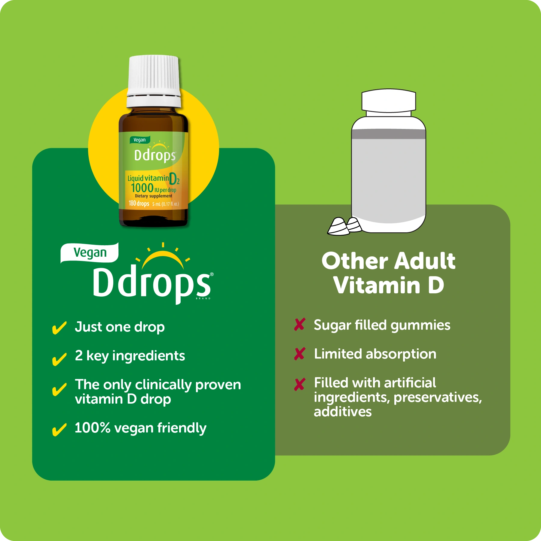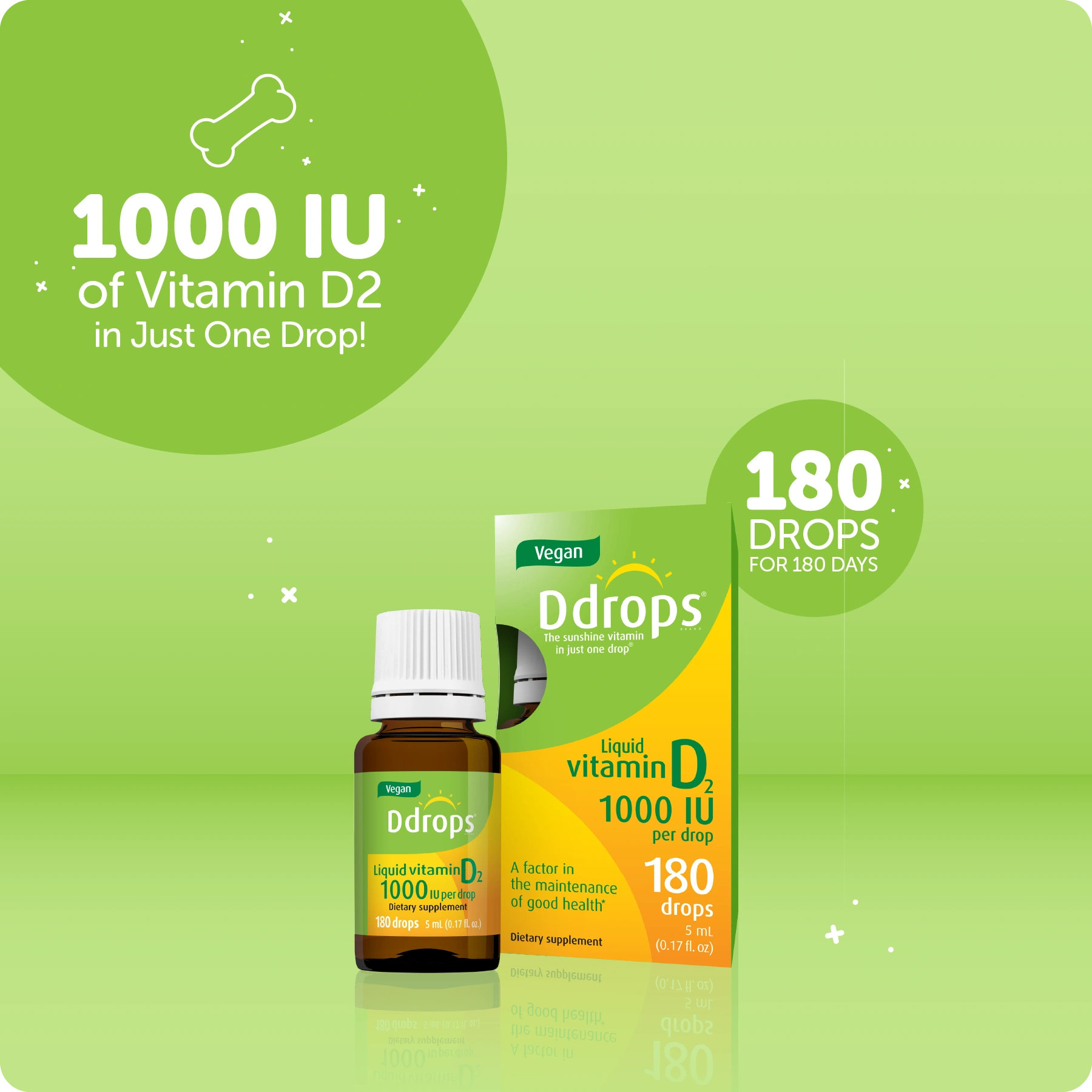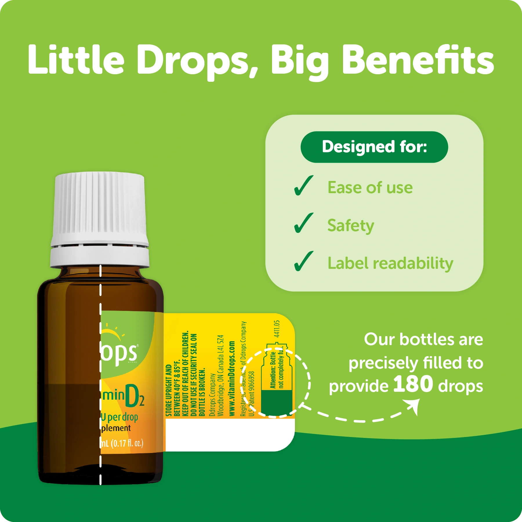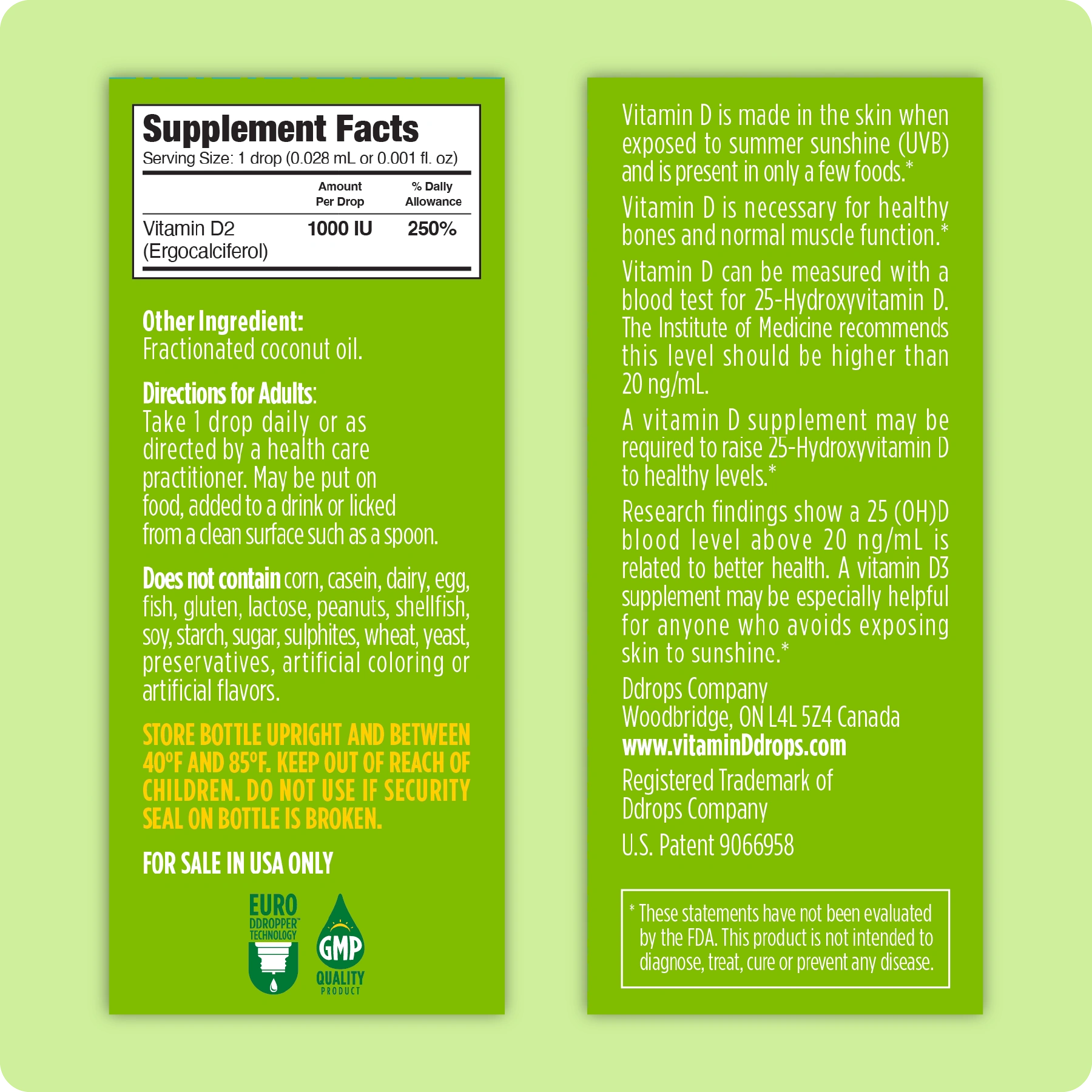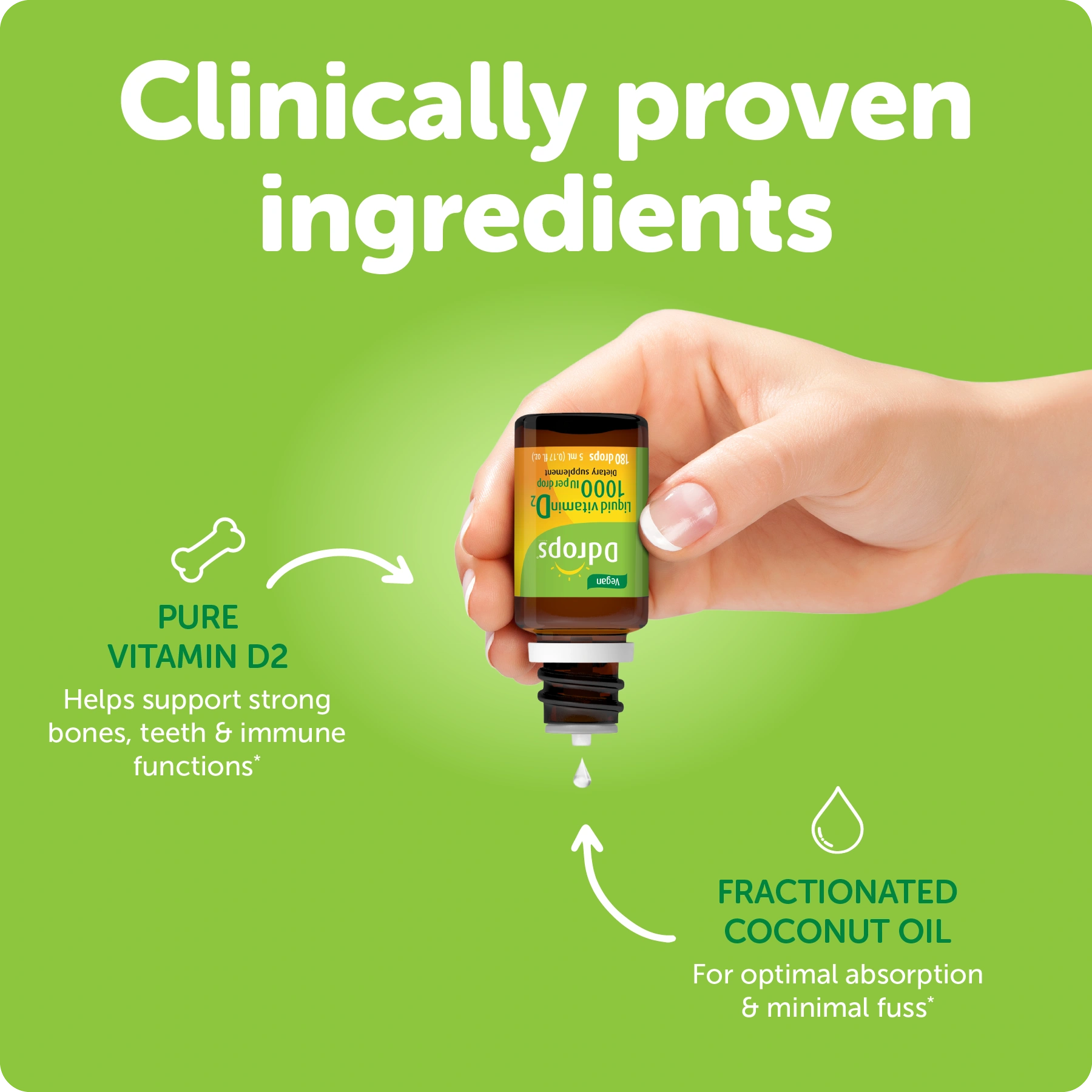 Daily recommended 1000 IU of vitamin D2 in just one drop.
